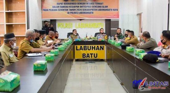 Lintas Sumut | Labuhanbatu – Dalam rangka meningkatkan sinergitas antar Forum Komunikasi Pimpinan Daerah (Forkopimda) Labuhanbatu Raya bersama jajaran terkait menggelar Rapat Kordinasi (Rakor) untuk meningkatkan kesiapsiagaan bencana alam pada