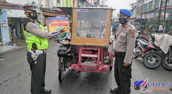Sosialisasi Gunakan Stiker, Sat Lantas Polres T.Balai Tempel Stiker Ayo Pakai Masker