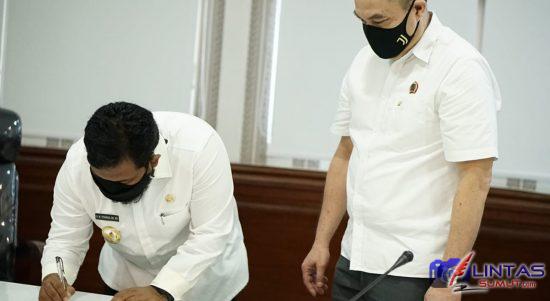 LINTAS SUMUT | TANJUNGBALAI Wali Kota Tanjungbalai, H.M Syahrial SH,MH menerima Peta Zona Nilai Tanah (ZNT) dari Kepala Kantor Pertanahan Kota Tanjungbalai Imansyah Lubis, SH. Hal ini Ditandai dengan penandatanganan