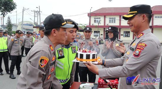 Lintas Sumut | Belawan- Kapolres Pelabuhan Belawan AKBP Josua Tampubolon, SH., MH., bersama jajaran Polres Pelabuhan Belawan merayakan ulang tahun personil yang lahir pada Bulan Februari. Kegiatan tersebut dilaksanakan usai