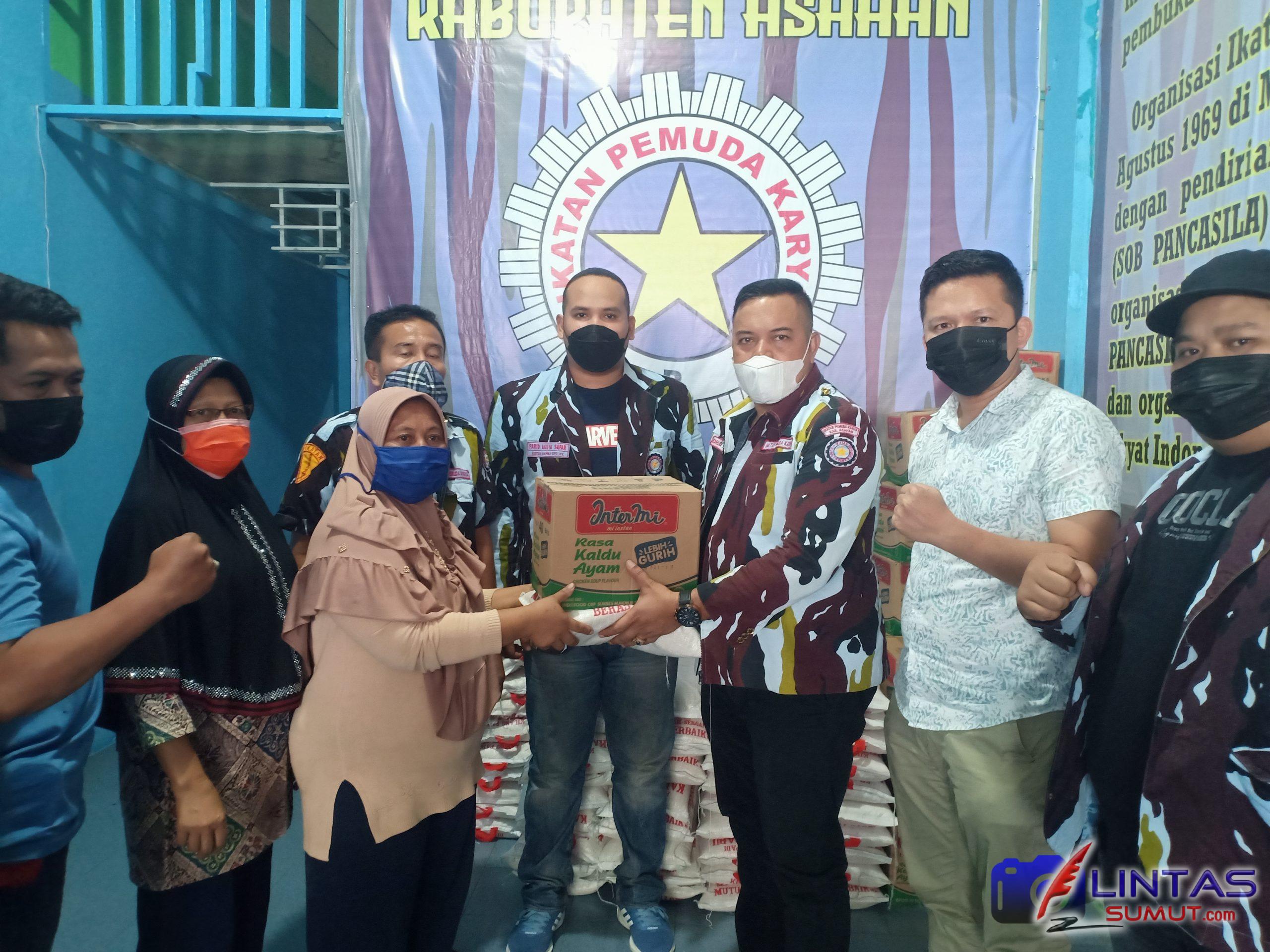 Untuk meringakan beban kaum marginal ditengah situasi Pandemi Covid 19, Dewan Pimpinan Daerah Ikatan Pemuda Karya (DPD IPK) Asahan salurkan sembako kepada masyarakat yang membutuhkan di Kantor DPD IPK jalan Dr. Sutomo No 196 Kisaran, Senin (8/3/21).