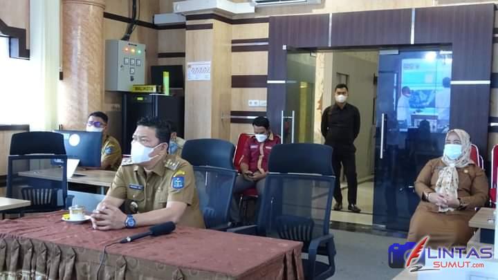 Wakil Wali Kota Sibolga Pantas Maruba Lumban Tobing, mengikuti Peluncuran Sistem Online Single Submission (OSS) Berbasis Resiko Via Video Conference (Vidcon), di Ruangan Command Center Kantor Wali Kota Sibolga, pada Senin (09/08/21) pagi.
