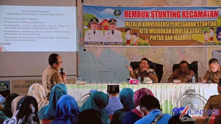 Wakil Wali Kota Sibolga, Pantas Maruba Lumban Tobing membuka rembuk Stunting kecamatan yang digelar di Aula kantor Kecamatan Sibolga Selatan, Rabu (21/06/23) siang.