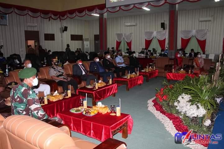 Wali Kota Sibolga H. Jamaluddin Pohan, bersama Wakil Wali Kota Pantas Maruba Lumban Tobing, mengikuti Rapat Paripurna DPRD Kota Sibolga, dengan agenda mendengarkan Pidato Kenegaraan Presiden Republik Indonesia (RI) dalam Peringatan Hari Ulang Tahun (HUT) ke-76 Kemerdekaan RI Tahun 2021, dari Gedung DPR-RI di Jakarta. Rapat Paripurna DPRD ini dilaksanakan di Ruang Sidang Utama DPRD Kota Sibolga, pada Senin (16/08/21) pagi.