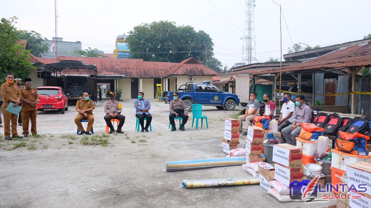 Walikota Tanjungbalai HM Syahrial SH MH didampingi Kapolres Tanjungbalai AKBP Putu Yudha Prawira SIK MH memimpin langsung penyerahan bantuan kepada korban kebakaran asrama Polsek Tanjungbalai Selatan, Polres Tanjungbalai dan dihadiri Sekda Pemko Tanjung Balai Yusmada Siahaan SH MAP, Wakapolres Kompol H Jumanto SH MH, Kepala Dinas Sosial Pemko Tanjung Balai M Idris, SH, Kepala BPBD Ridwan Parinduri, Kabag Ops Ngemat Surbakti SH, Kapolsek TBS Kompol S. Purba SH, Kasat Intelkam AKP JF. Simanjuntak, Kasat Reskrim AKP Rapi Pinakri SH SIK, Kasat Lantas AKP HW Siahaan SH dan Kapolsek TBU IPTU S Tambunan, SH, Terang Kasubbag Humas IPTU Ahmad Dahlan Panjaitan, Rabu (12/8) diruang kerjanya.